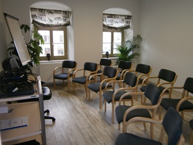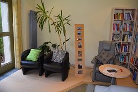 Meine Praxis liegt verkehrsgünstig in der Innenstadt von Freiberg, in der Nähe der Nikolaikirche und des Mittelsächsischen Theaters. Unmittelbar neben der Praxis befindet sich ein öffentlicher, kostenpflichtiger Parkplatz. Ich versuche, durch farbige Akzente, ständig wechselnde Dekorationen und Einbringen aroma-therapeutischer Elemente eine angenehme und nicht sterile Atmosphäre für meine Patienten zu schaffen. Das unter Denkmalschutz stehende Gebäude, in dem sich meine Praxis sowie die Praxis meines Mannes im Erdgeschoss befinden, wurde im Jahre 1790 erbaut und 1999 von Krehers Bau- und Sanierungs- GmbH unter Berücksichtigung von Sonderwünschen saniert. Patientenbibliothek, bestehend aus über 400 Büchern sowie Bild- und Tonträgern: Meine Patienten haben die Möglichkeit, sich Bücher, CDs und DVDs zu unterschiedlichsten Themen und Krankheitsbildern auszuleihen. Auf Wunsch führe ich auch Internet-Recherchen zu bestimmten medizinischen Themen für meine Patienten durch. Ich arbeite eng mit Ärzten anderer Fachrichtungen, Psychologen und Mitarbeitern von Beratungsstellen zusammen. Wenn die medizinische Notwendigkeit gegeben ist, überweise ich Sie zu anderen Fachärzten, veranlasse weiterführende Diagnostik, initiiere eine Einweisung in eine Fachklinik oder erstelle fachärztliche Befundberichte für die Beantragung einer medizinischen oder beruflichen Rehabilitationsleistung bzw. einer prophylaktischen Kurmaßnahme. Weiterhin helfe ich gerne mit Adressen anderer Ärzte und Therapeuten, Selbsthilfegruppen, Notdiensten und Beratungsstellen weiter. Die Räume im Obergeschoss werden als Gruppentherapie- und Seminarräume genutzt. Eine Vermietung der Räume im Obergeschoss mit separatem Eingang, Küche und WC u.a. für Informationsveranstaltungen, Treffen von Selbsthilfegruppen etc. ist möglich.